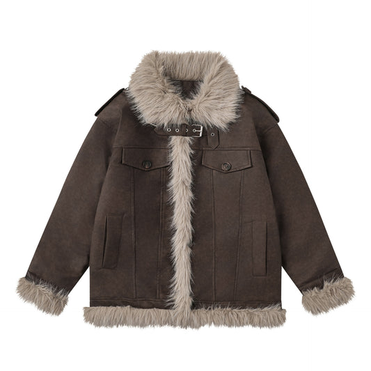 Autumn And Winter New Metal Leather Ring Fur Stitching Casual Fashionable Stylish Coat