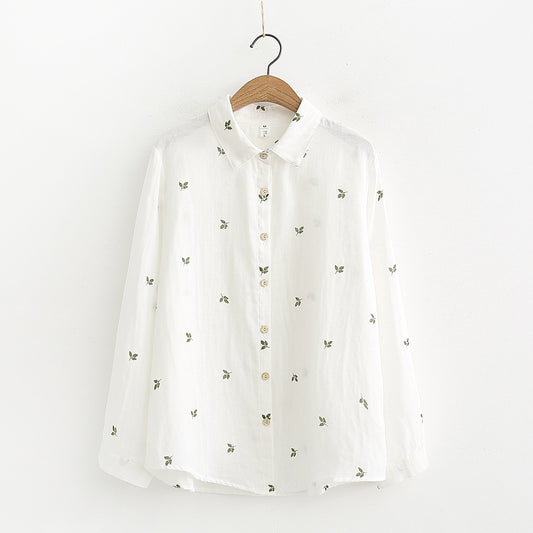 Autumn Artistic Leaves Printed Long-sleeved Shirt