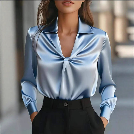 Autumn Fashion Commuting Satin V-neck Long-sleeved Shirt