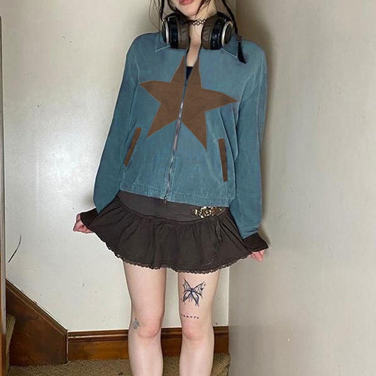 Antique Star Embroidered Color Matching Loose Long Sleeve