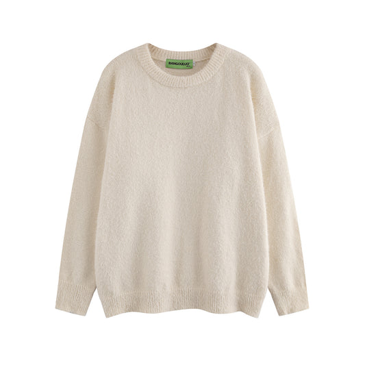 American Retro Simple Solid Color Crew Neck Pullover Sweater Men And Women