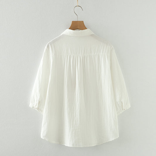 Artistic Flower Embroidery Double-layer Cotton Yarn Half Sleeve Shirt New Loose-fitting Short Sleeves Top