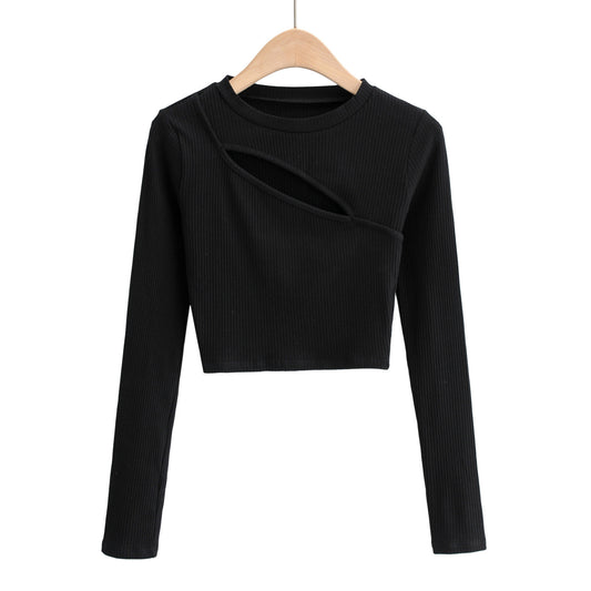 Aproms-Women Ribbed Knit Long Sleeve T-Shirt Sexy Slim Crop Top Women Urban Fashion Black T-Shirt