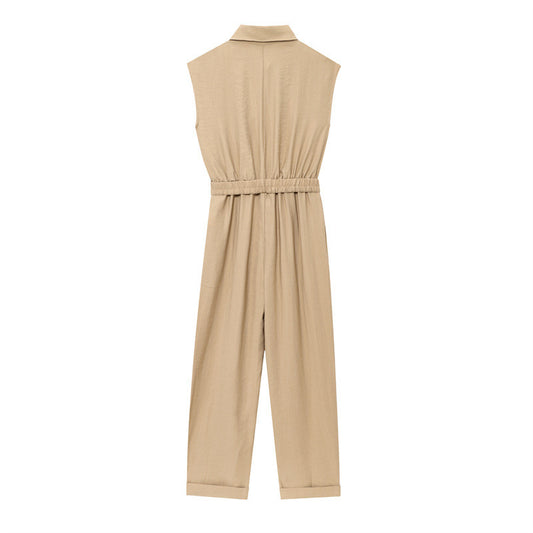 High-grade Solid Color Sleeveless Slim Temperament With Belt Jumpsuit