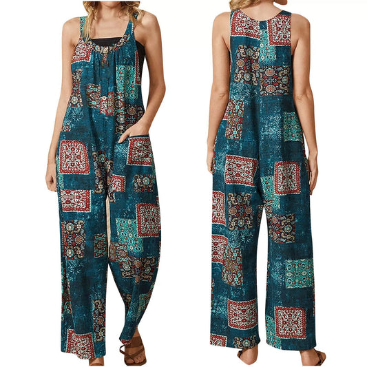 Women's Loose Vintage Print Jumpsuit