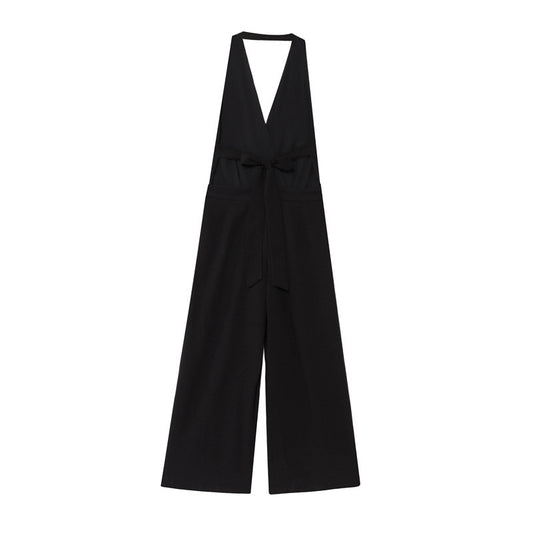 Crepe Hanging Collar Sexy Backless Slim Fit Backless Jumpsuit