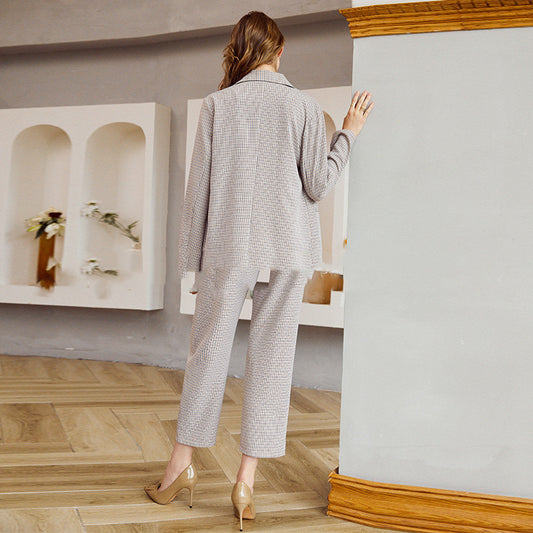 Autumn And Winter Fashion Women'S Casual Commuter Plaid Elegant Temperament Professional Style Street Two-Piece Suit Green