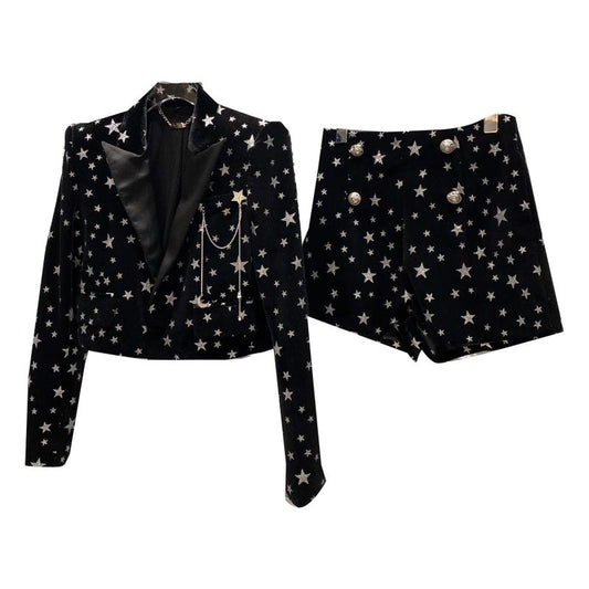 Commuter Red Necktie Suit Coat Shorts Two-piece Suit