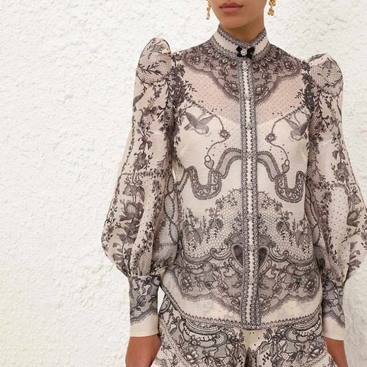 New Heavy Industry Tassel Bright Silk Shirt Top Shows Thin Women