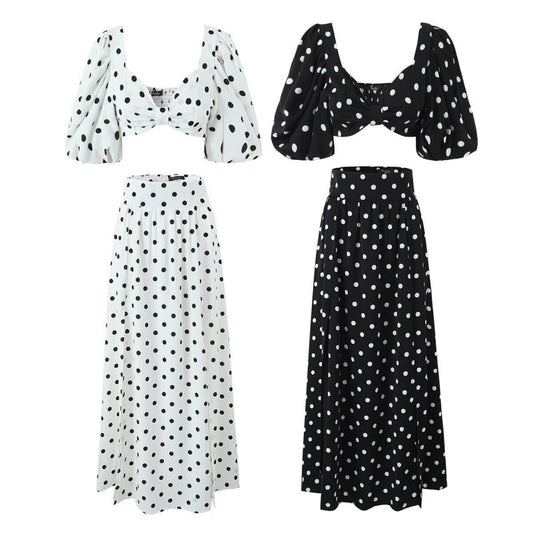 Seaside Vacation Sexy Polka Dot Split Top Mid-length Dress Set