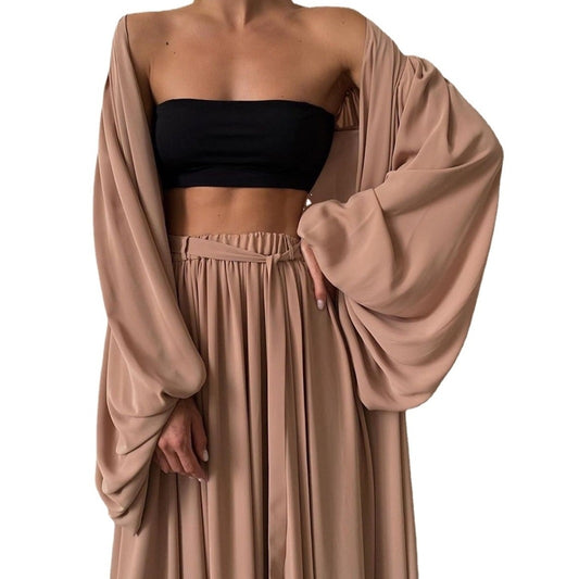 Three-piece Long Cardigan Tube Top Wide-leg Pants