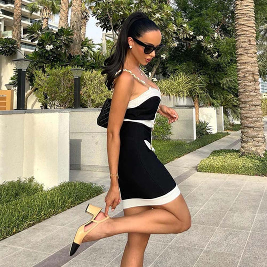Halter Spun Yarn Sling With Mid-length Dress Set