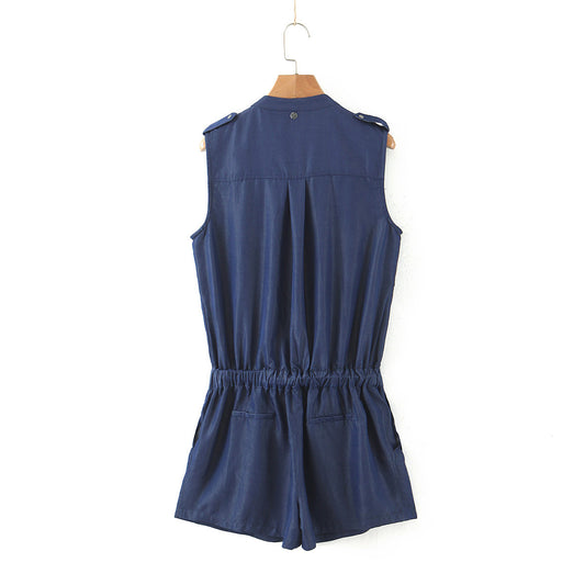 Summer Women's Cotton Linen Sleeveless Jumpsuit