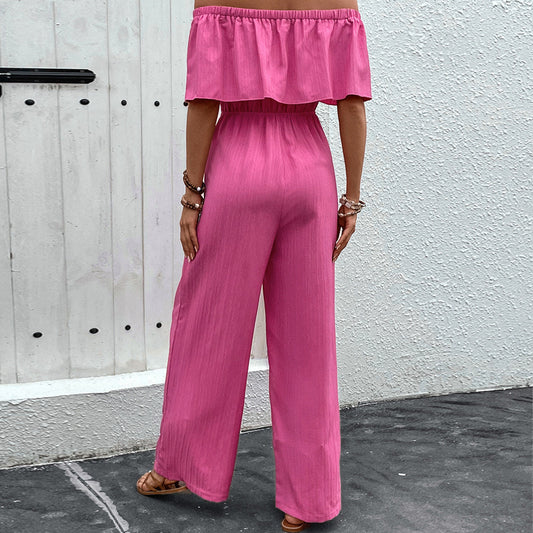 Women's Off-shoulder Ruffled Solid Color Jumpsuit