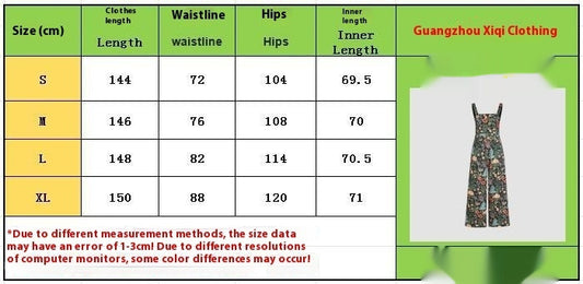 Women's Fashion Temperament Printed Diagonal Collar Sleeveless Mid-length Jumpsuit