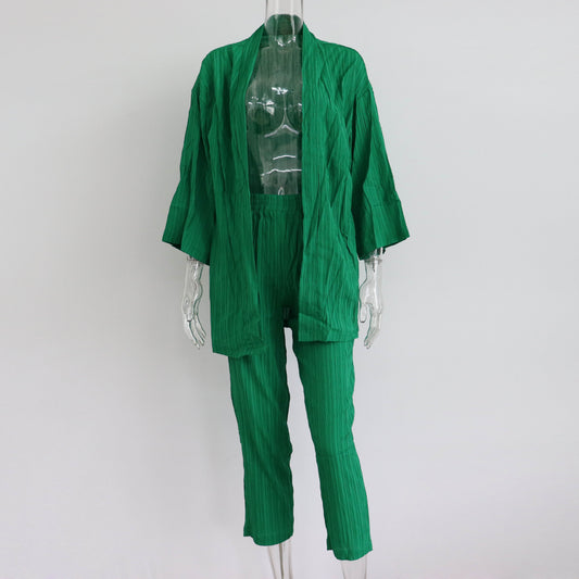 Casual Palace Style Bishop Sleeves Top Bell-bottom Pants Suit