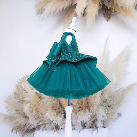 Golden Sequined Puff Sleeve Birthday Party Princess Dress