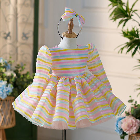 Cute Stripes Long Sleeve Umbrella Princess Dress