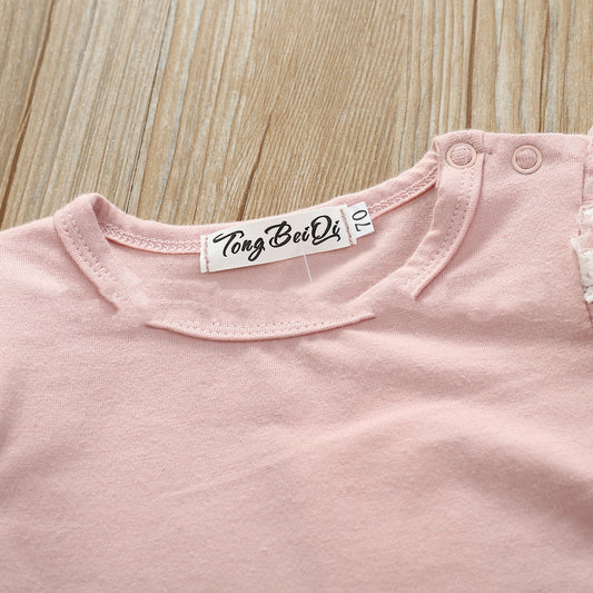 Infant And Toddler Cotton Lace Long-sleeved Harness Lace Long Pants Set