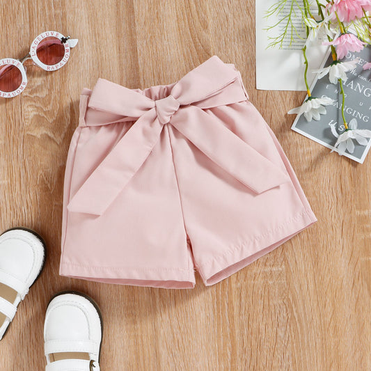 Sleeveless Slanted Shoulder Bow Shorts Girls Suit