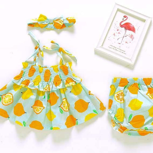 Children's Stiletto Top And Printed Shorts Free Bow Headband
