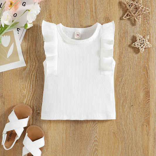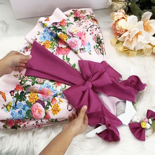 Baby Girls Floral Lace Up Crop Tops+Shorts Pants