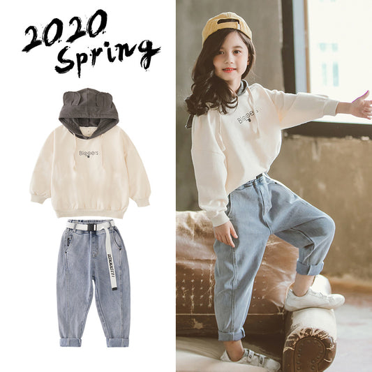 Girls' Clothes Beer Print Top Jeans Suit Western Style