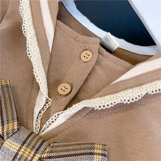 Love Long-sleeved Blouse Plaid Suspender Skirt Two-piece Children's Wear