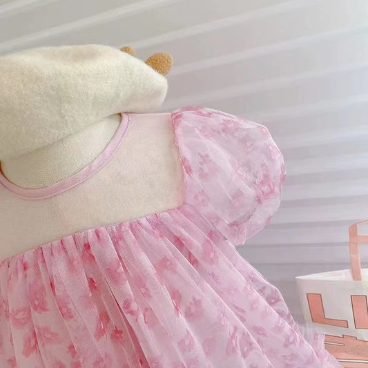 Children's Tricolor Floral Fly Sleeve Slip Dress