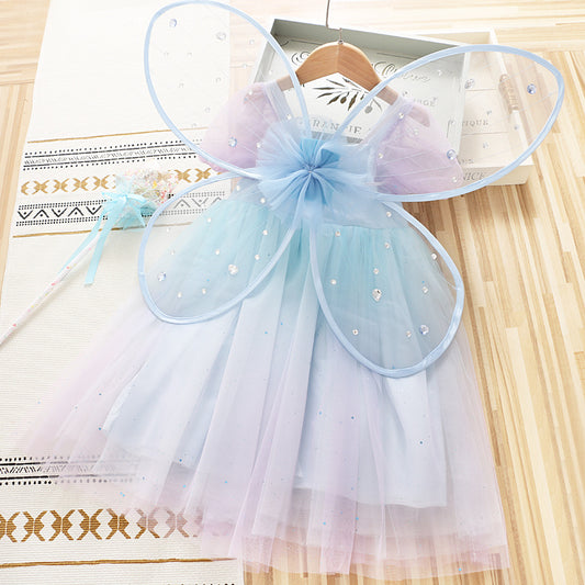 Girls Princess Western Style Rainbow Butterfly Wings Dress