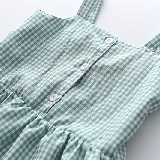 Two-piece Ruffled Plaid Suspender Top And Shorts