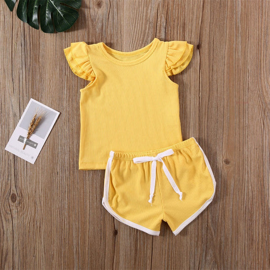 Girls Pit Cotton Fly Sleeve Blouse And Shorts Set
