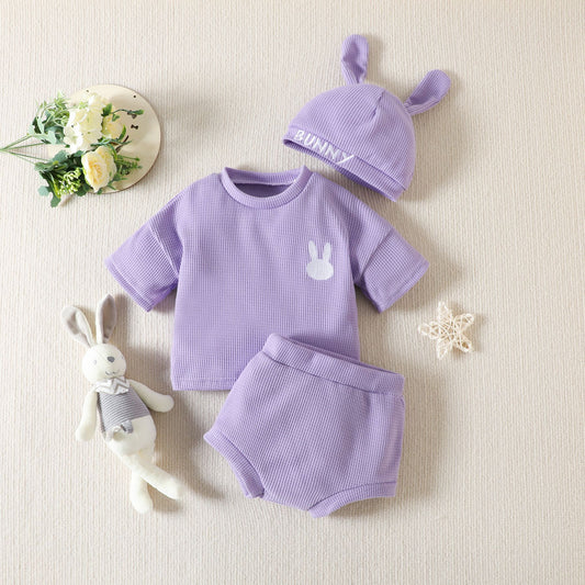 Rainbow Waffle Four-color Side Button Short Sleeve Baby Bodysuit Shorts Suit