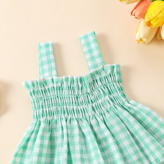 Baby Girl Cute Plaid Sling Half-length Lace Skirt Shorts Two-piece Suit