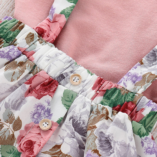 Girls' Fashion Simple Cotton Pit Strip Sling Printed Harness Skirt Set
