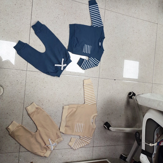 Cross-border New Arrival Infant Trousers Solid Color Rib Fabric Suit