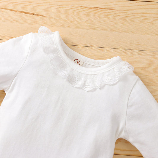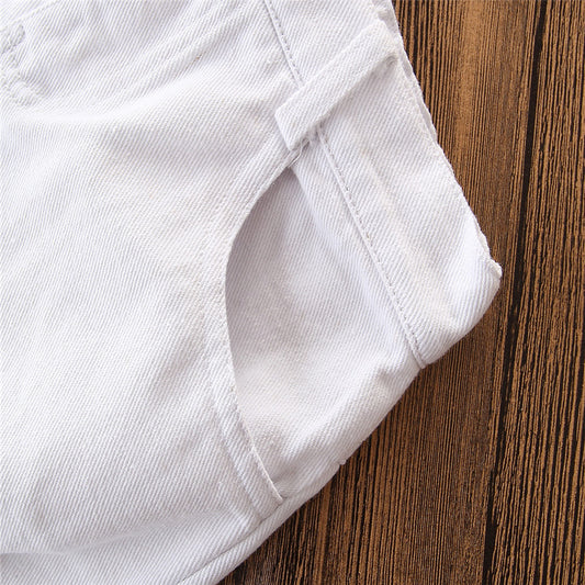 Girls' Cotton White Flying Sleeve Short-sleeved Romper Flower Suspenders Skirt Head Knot