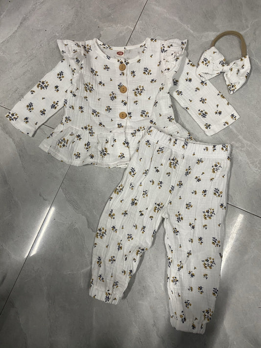 Summer Baby Girl Beach Short-sleeved T-shirt Shorts Hairband Set