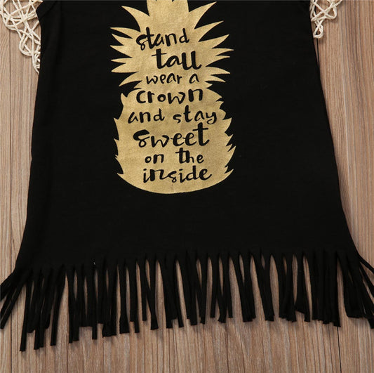 Bronzing Pineapple English Alphabet Fringed Skirt