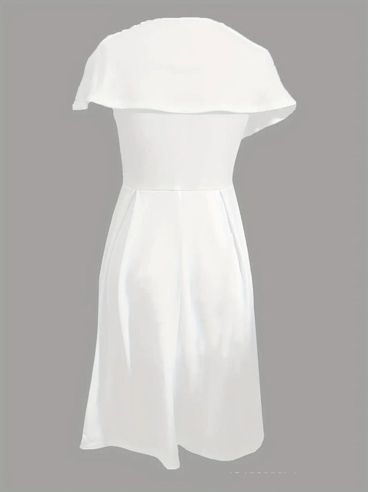Female Oblique Shoulder Sleeveless Irregular Thin Band Trimmed Dress