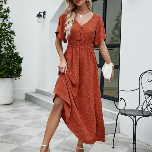 Solid Color V-neck Bell Sleeve Extra Long Dress