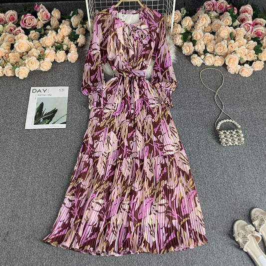 Super Long Chiffon Vacation Style Dress Women's High Waist Slim Fit Slimming
