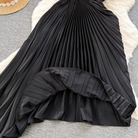 Women's Solid Color Versatile Fashion Single Shoulder Long Dress Set