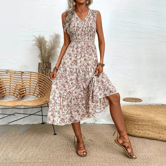 Printed Sleeveless Sling Dress Mid-length Women