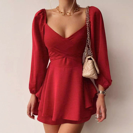 Women's Autumn Halterneck Long-sleeved Thin Strap Slim Fit Dress