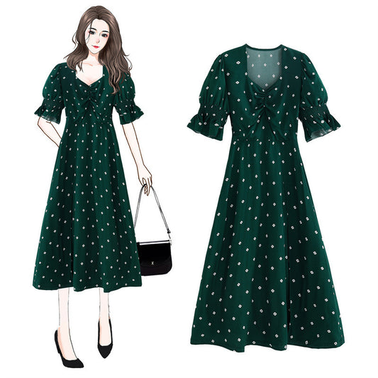 Women's Summer Leaf Print Half-length Sleeve Dress