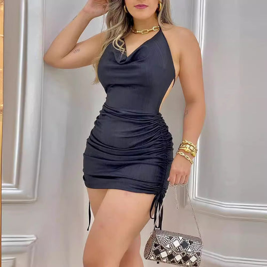 European And American Sexy Fashionable Slim-fit V-neck Halter Dress Backless