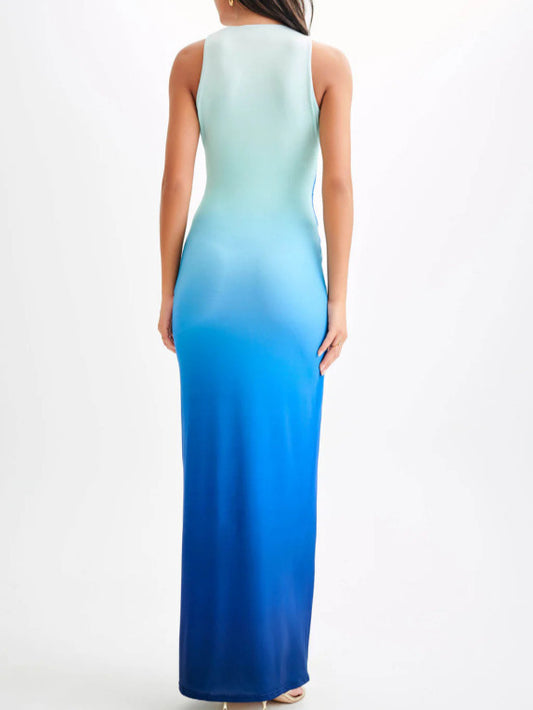 Ins European And American Sexy Hot Girl Sunken Stripe Design Sense Side Slit Slim Fit Slimming Dress