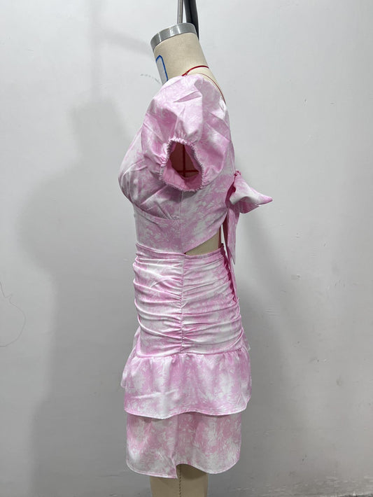 Crocheted Hollow Embroidery Stitching Lace-up Waist-controlled Slimming Dress