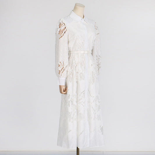 Lapel Long Lantern Sleeve Mid-length With Embroidery Dress